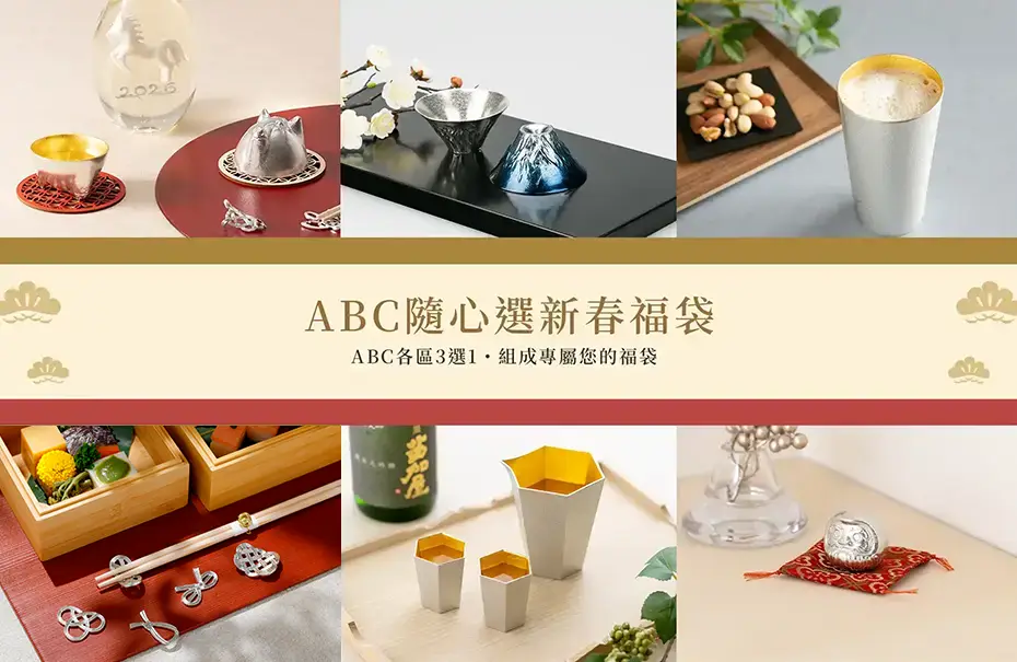 從酒器、餐具到居家小物,A+B+C三區各選其一,不僅有經典的馬年生肖造型杯、台灣限定版的藍色富士山風情杯,還有新款商品金箔六角酒器系列等等。組合價內容最高價值NT$9,700,專屬組合價只要NT$6,666。與其等待運氣,不如親手挑選這份陪伴您一整年的純錫光澤。讓能作的溫潤,為您的2026注入滿滿福氣。