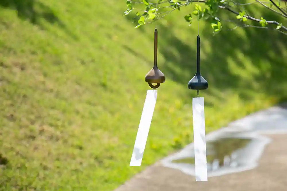 風鈴表面採用古代色加工技術,發色的色澤會隨季節的變化而產生微妙的差異,讓每件作品都擁有專屬的獨特表情,彷彿為您量身訂製的藝術品。掛在窗邊或陽台,隨風輕響的聲音清澈悠揚,為日常生活增添一絲悠然與詩意。