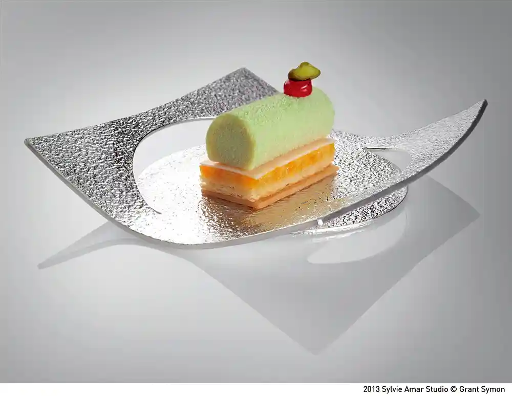 此作品出自法國設計師 Sylvie Amar之手,是專為世界各地高級餐廳打造的專業餐具系列之一。結合法式美學與日本鑄造技藝的細緻工藝,讓這款菱花盤不僅是日常實用器,更是展現生活品味與心意送禮的理想之選。