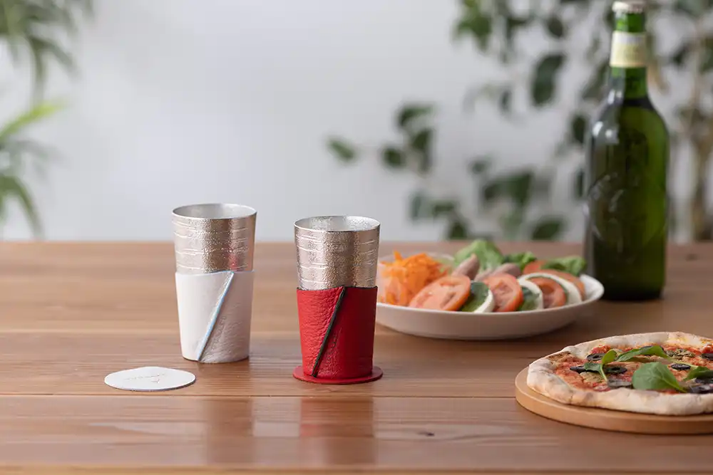 以北海道白樺木紋為靈感的純錫啤酒杯,結合了專注於推廣蝦夷鹿革永續利用的工藝品牌「24 KIRICO」,共同打造出這套兼具自然美感與實用機能的限定組合。100%純錫製作的白樺經典純錫杯,利用其表面細緻的鑄造梨地紋理,能幫助啤酒產生如奶油般綿密持久的泡沫,鎖住酒液最純粹的麥香,僅需將杯身放入冰箱一至兩分鐘,即可讓您暢享極致冰涼的品飲體驗。