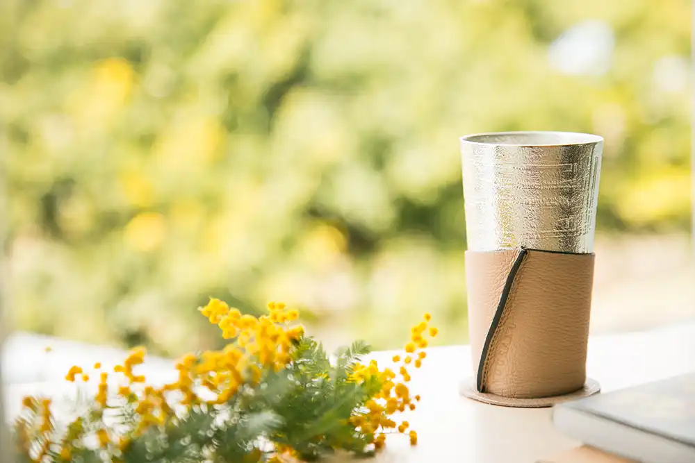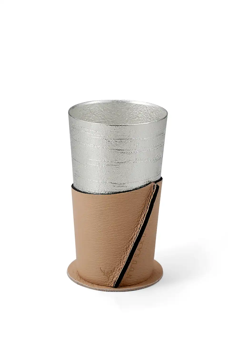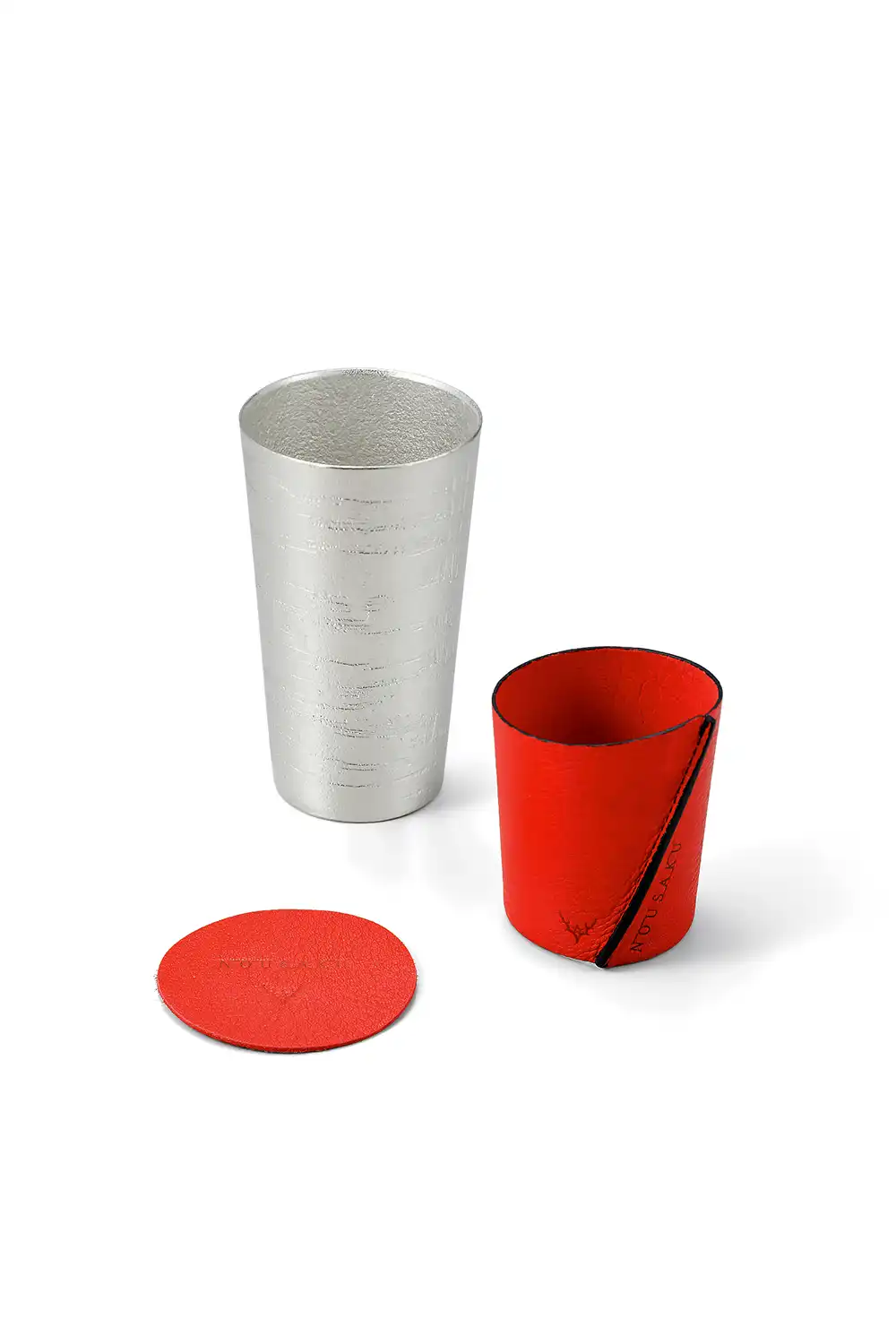 白樺經典純錫杯搭配使用的杯套與杯墊,特別選用近年因保育平衡議題而受重視的北海道蝦夷鹿皮製成,表面經過防水處理,讓您在享用冷飲時無須擔心水滴滲透,更能同時感受金屬鑄造的沉穩質感與皮革的細膩溫潤。這份作品不僅是一場異材質工藝的跨界對話,更將北國森林的靜謐氣息與永續思維,優雅地帶入您的日常品飲時光。
